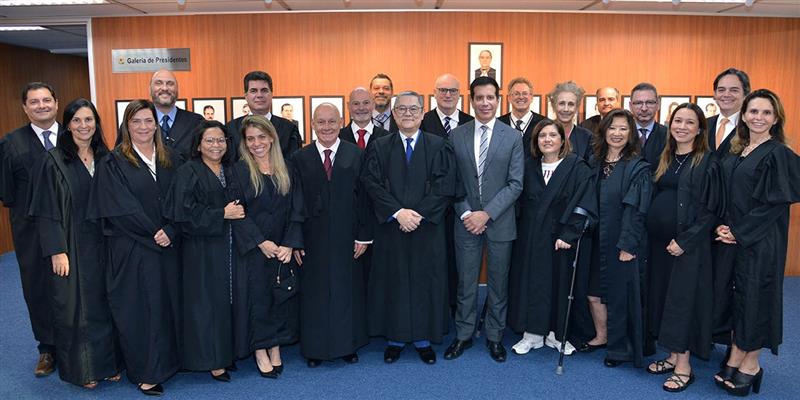 Ciro Brandani Fonseca (terno cinza) ao lado do presidente Carlos Muta e demais desembargadores (Foto: Acom/TRF3)