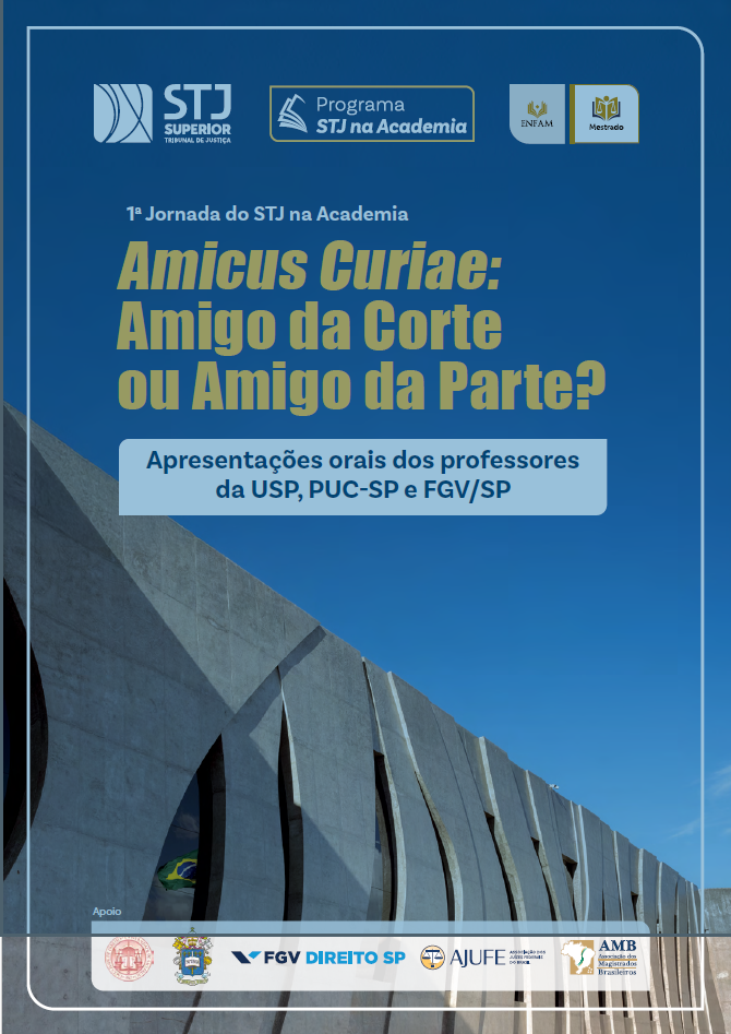 O Superior Tribunal de Justiça (STJ) publicou uma obra reunindo as apresentações orais de professores da Universidade de São Paulo (USP), da Fundação Getúlio Vargas (FGV) e da Pontifícia Universidade Católica de São Paulo (PUC-SP) sobre a figura do amicus curiae, realizadas durante a primeira edição do "Programa STJ na Academia", em 19 de maio de 2025.