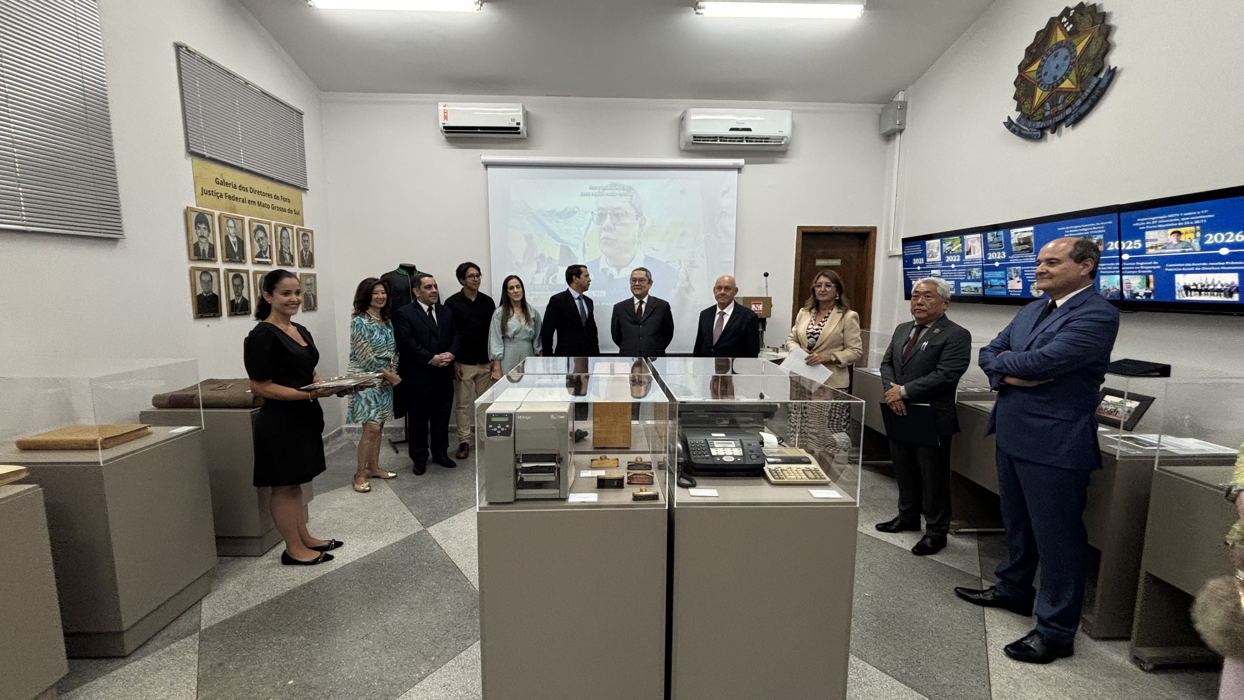 Outros itens expostos são o primeiro livro de protocolo geral, iniciado na instalação da Justiça Federal em Mato Grosso do Sul, em 12 de dezembro de 1980, máquinas de ponto e o primeiro livro de Rol de Culpados do Estado.
