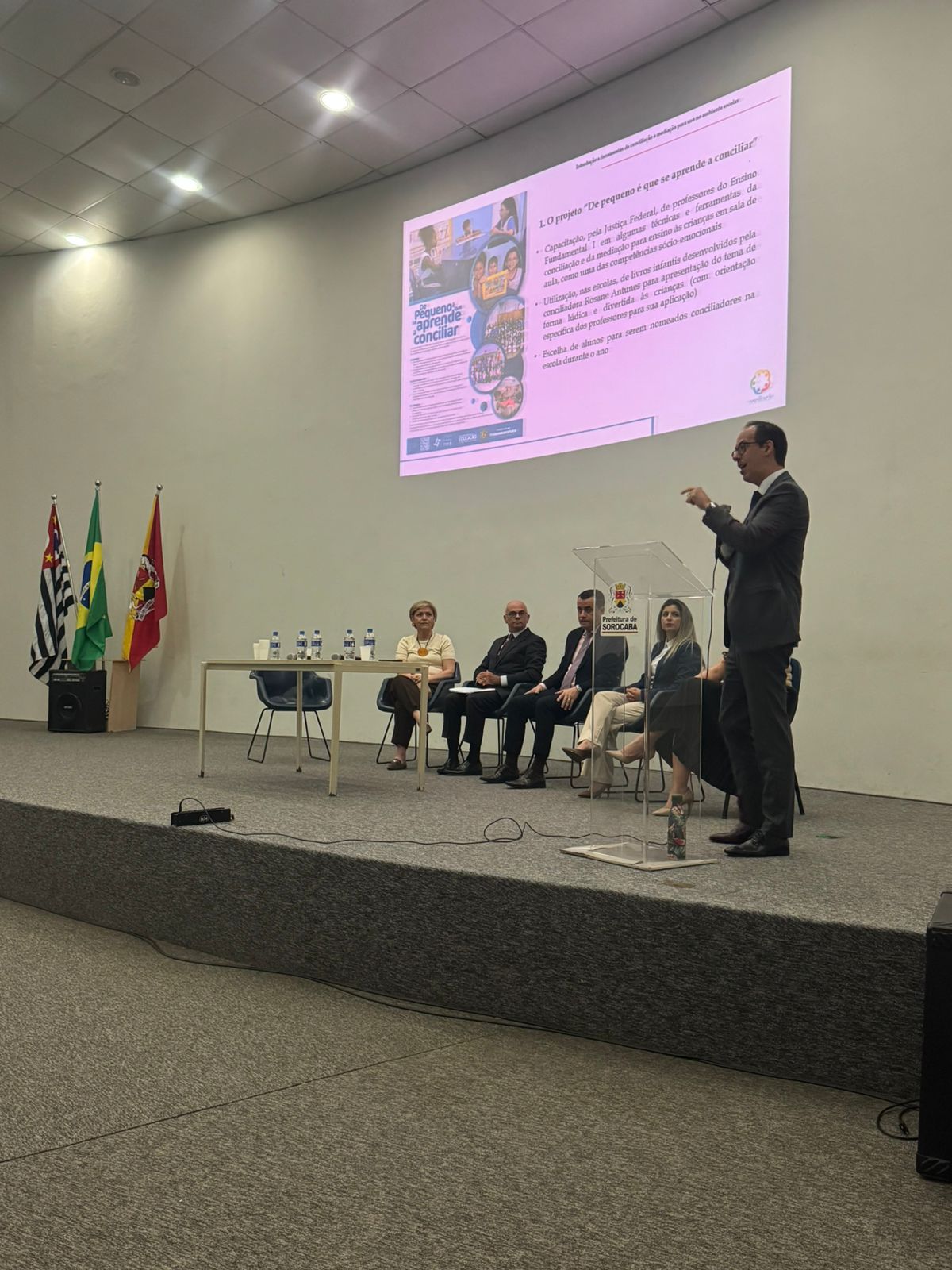 Diretores e professores da rede municipal de ensino de Sorocaba/SP participaram, no dia 29 de setembro, da apresentação do projeto “De Pequeno é que se Aprende a Conciliar", conduzida pelo juiz federal Paulo Marcos Rodrigues de Almeida. O objetivo do encontro foi divulgar a iniciativa a fim de implementá-la no início de 2026.