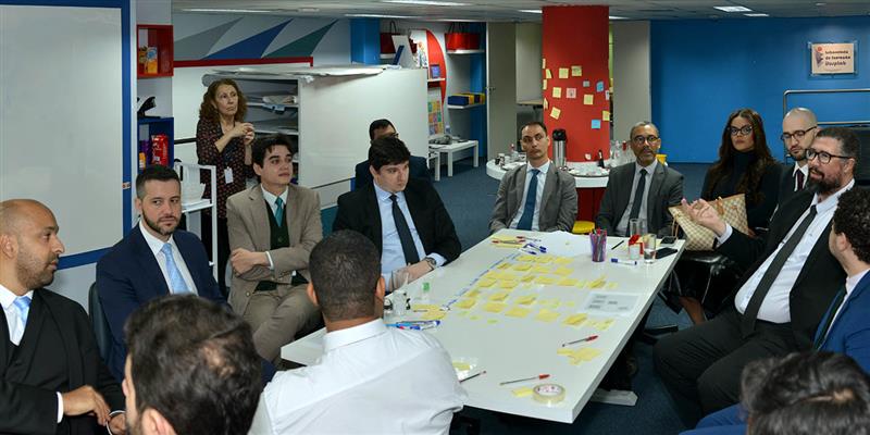 No iJuspLab, os juízes participaram de oficina baseada na metodologia design thinking. O intuito foi proporcionar um espaço de comunicação e reflexão para construção conjunta de soluções voltadas aos desafios de gerir a unidade judiciária com foco na integração da equipe e fortalecimento da cultura organizacional.