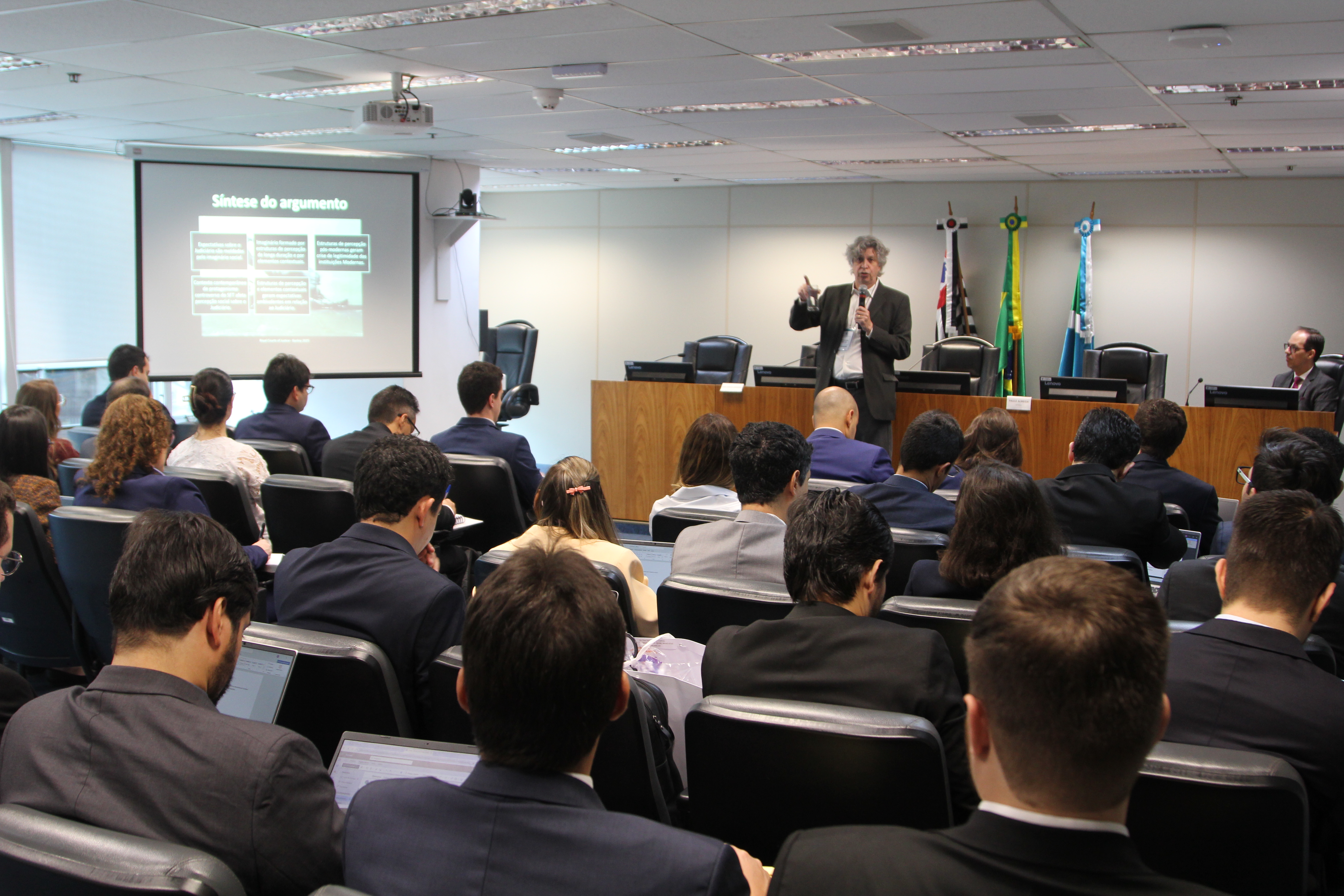 Segundo o palestrante, o Judiciário se tornou o principal ponto de contato da sociedade com o sistema de justiça, em especial por meio da atuação do Supremo Tribunal Federal (STF). Isso gera uma expectativa de que magistrados resolvam contradições estruturais da democracia, como desigualdades sociais e demandas identitárias.