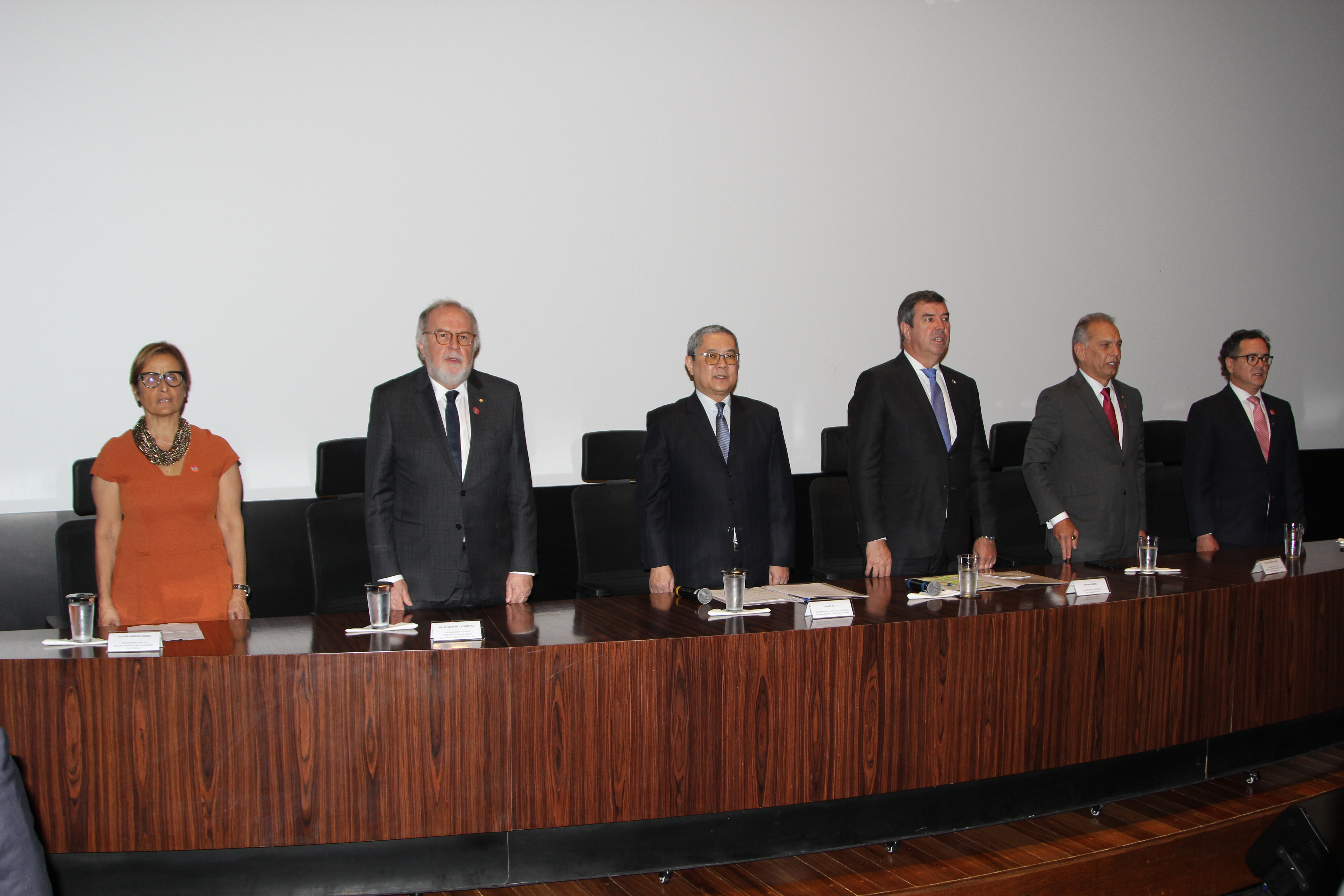 Autoridades na mesa de honra da solenidade (Foto: Acom/TRF3)