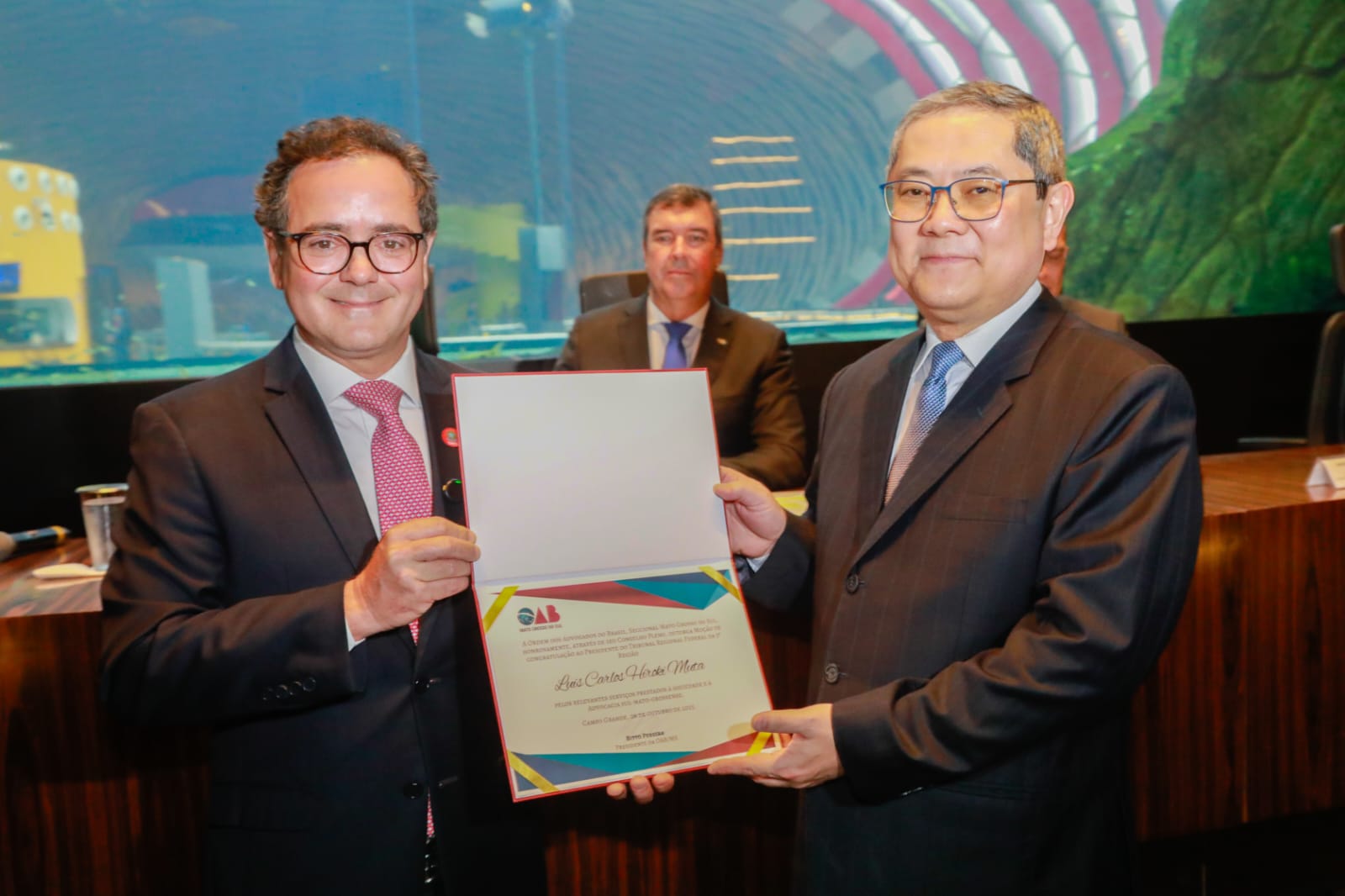 Bitto Pereira homenageou Carlos Muta e o TRF3 pelo empenho (Foto: OAB/MS)