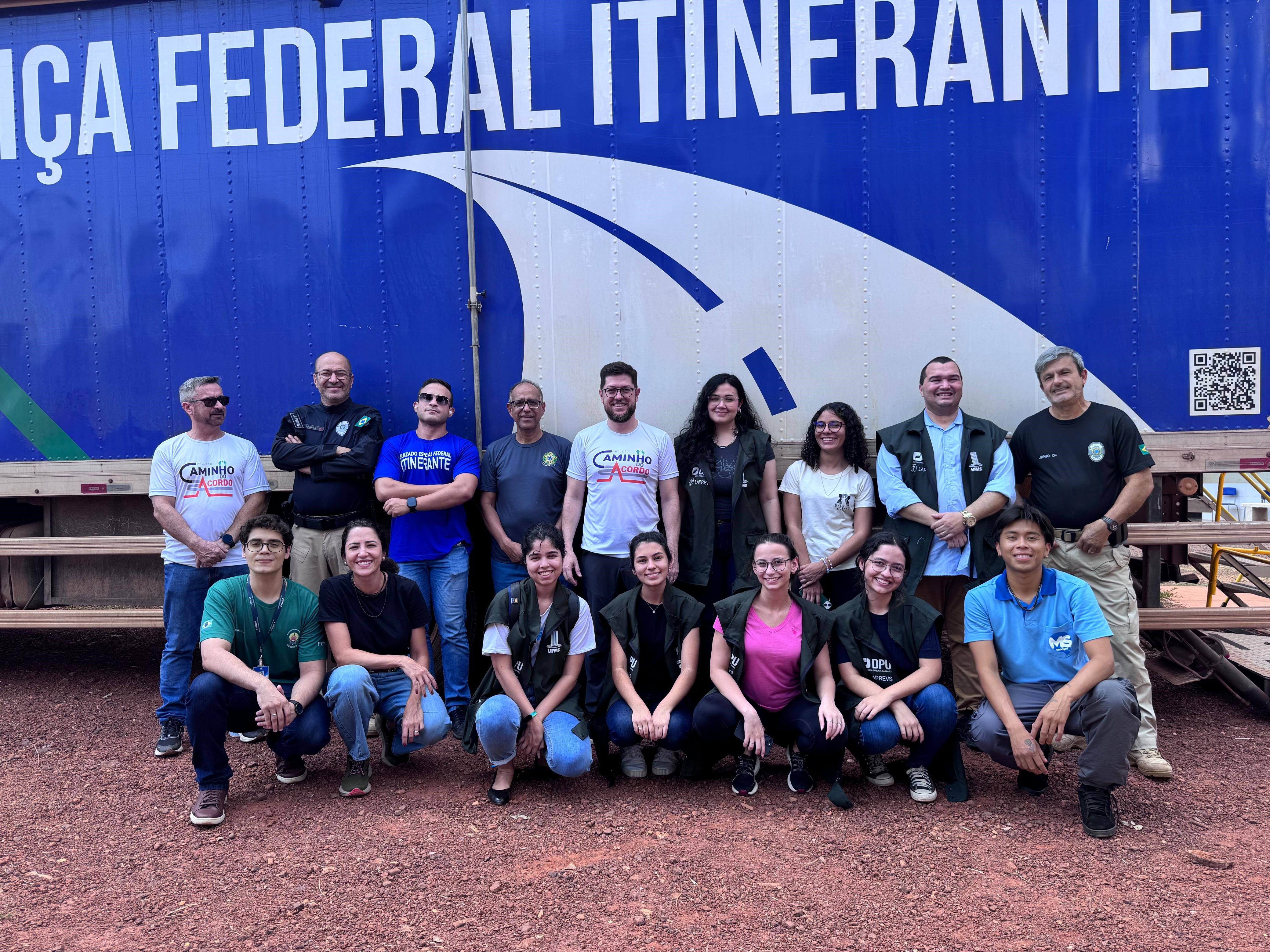 Equipes da Justiça Federal em Mato Grosso do Sul e de órgãos parceiros, diante do caminhão de atendimento itinerante