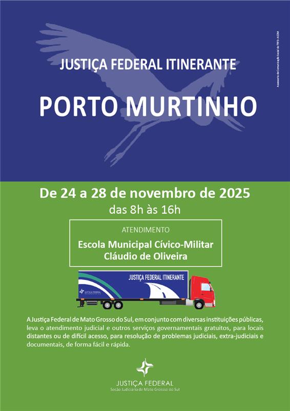 Com o apoio da Prefeitura Municipal de Porto Murtinho e parceria de várias entidades e órgãos, a iniciativa reafirma o compromisso da Justiça Federal com a promoção da cidadania e o acesso à justiça, especialmente para pessoas em situação de vulnerabilidade, como ribeirinhos, trabalhadores rurais e indígenas que vivem em áreas de difícil acesso.