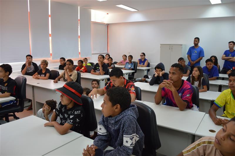 Crianças e adolescentes acompanham palestra sobre empreendedorismo e primeiro emprego