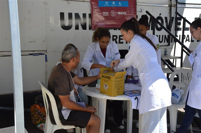 Na área da saúde e assistência social, há testagem rápida para HIV, sífilis, hepatite e Covid-19; vacinação; aferição de pressão arterial; orientações sobre diabetes, tuberculose, uso de álcool e drogas; cuidados com a saúde bucal; corte de cabelo, esmaltação e maquiagem; distribuição de refeições; varal solidário; serviços para animais de estimação; entre outros.