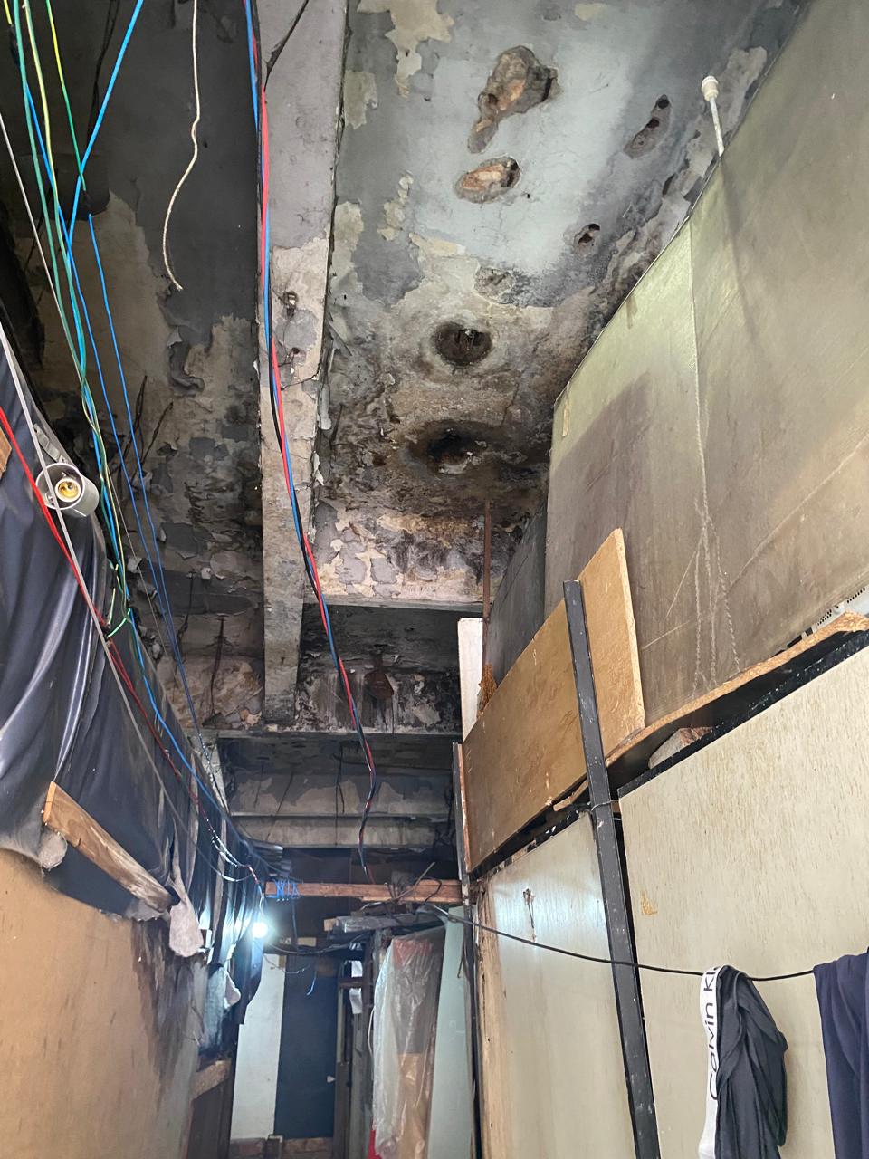 Conforme o relatório da visita técnica, a estrutura do prédio de dois pavimentos é precária, “com fiações aparentes e ligações clandestinas, que trazem eminente risco à segurança dos moradores”. As divisórias de madeira e a utilização de botijões de gás potencializam perigo de incêndio.