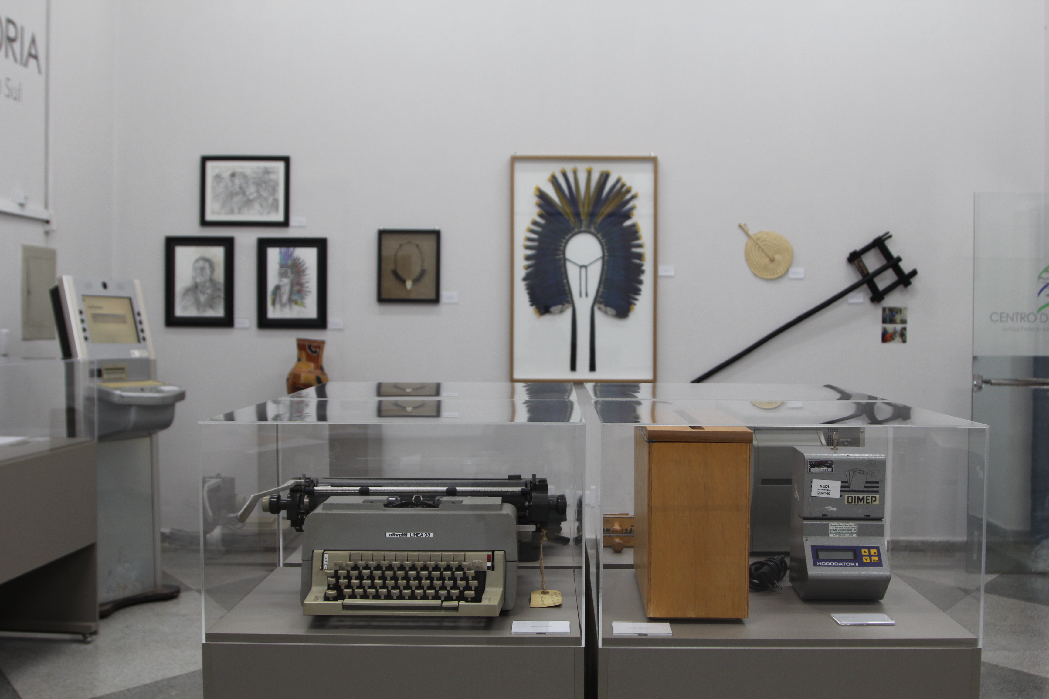 Outros itens expostos são o primeiro livro de protocolo geral, iniciado na instalação da Justiça Federal em Mato Grosso do Sul, em 12 de dezembro de 1980, máquinas de ponto e o primeiro livro de Rol de Culpados do Estado.
