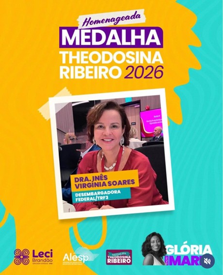 A desembargadora federal Inês Virgínia foi homenageada, no dia 20 de março, com a Medalha Theodosina Ribeiro, conferida pela Assembleia Legislativa do Estado de São Paulo (Alesp) a mulheres ou entidade de mulheres que se destacam na sociedade, em razão de sua contribuição ao enfrentamento da discriminação racial e na defesa dos direitos humanos.