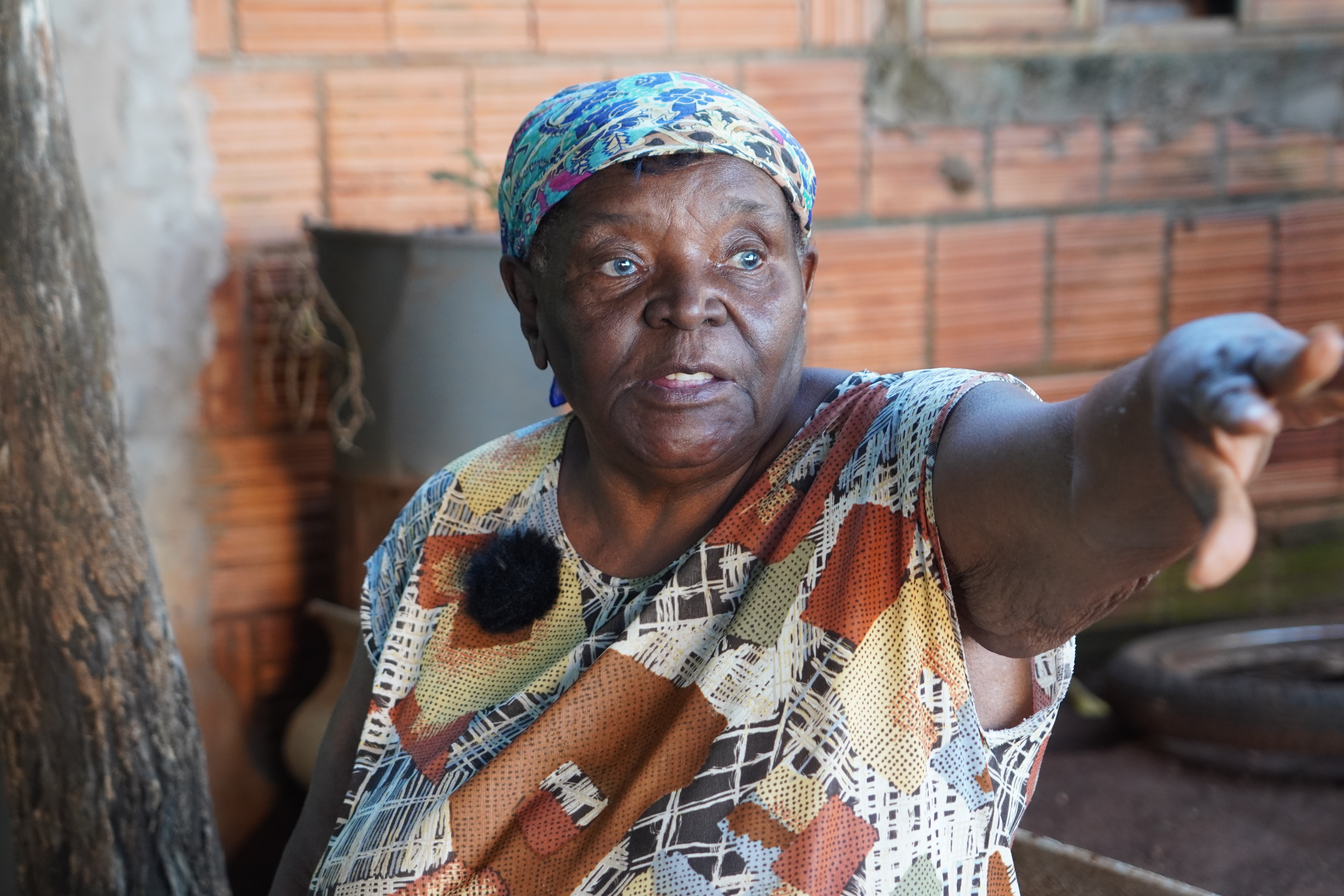 Nascida em Campo Grande, Maria Izabel Brito tem 82 anos e está há 47 na comunidade. Ela mora sozinha, planta frutas, legumes e cata latinhas para sobreviver.