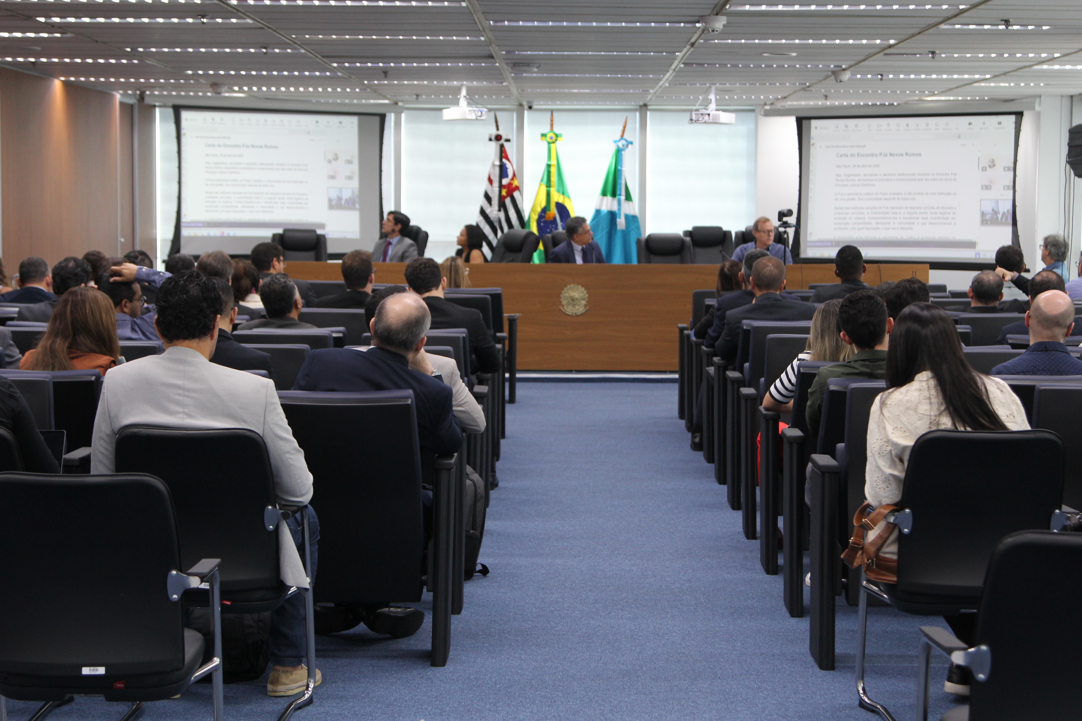 Magistrados, servidores e parceiros institucionais reunidos no evento aprovaram uma carta em que firmam compromissos do Poder Judiciário com o tema, visando ao aprimoramento tecnológico e à definição de estratégias comuns para evolução da plataforma em âmbito nacional.