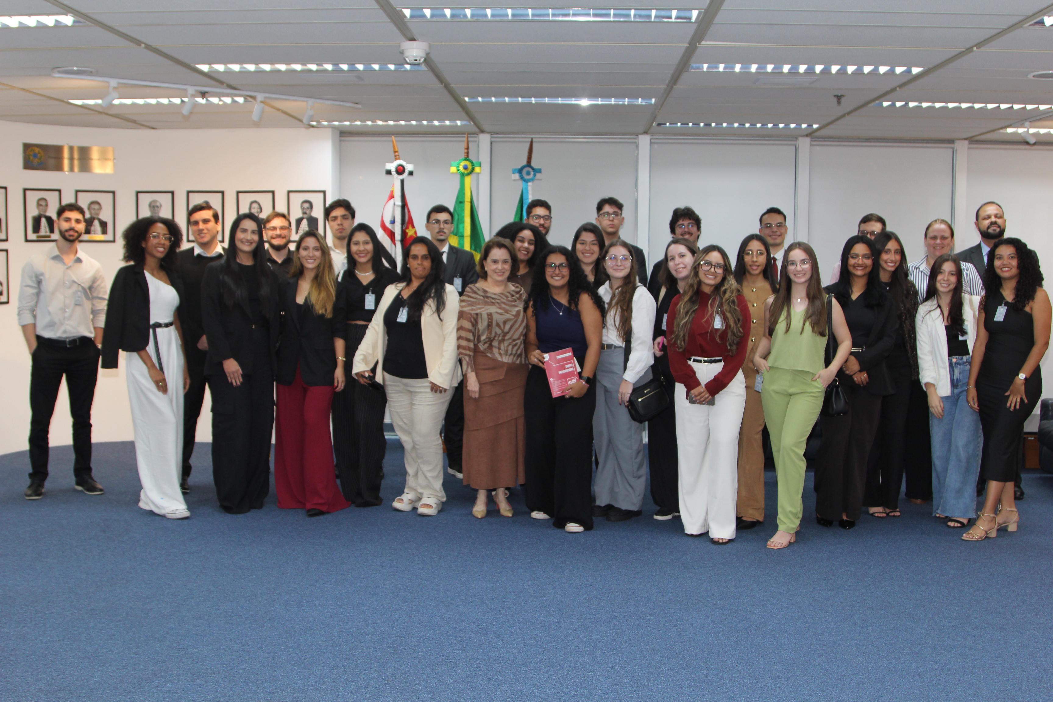 O grupo foi recebido pela desembargadora federal e ouvidora-geral Marisa Santos. O encontro começou no gabinete da desembargadora e terminou no auditório do 14º andar, onde a magistrada passou em revista sua trajetória pessoal e profissional, desde os tempos de estudante da USP até a posse na presidência da Corte.